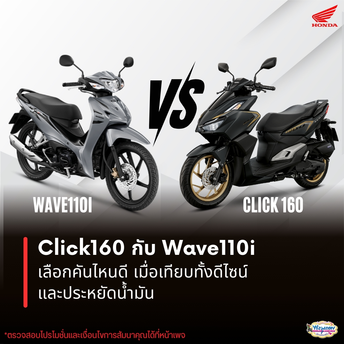 เมื่อพูดถึงมอเตอร์ไซค์ยอดนิยมในเมืองไทยที่ตีตลาดได้ทั้งวัยรุ่นและคนทำงาน สองรุ่นที่มาแรงอย่างต่อเนื่องคือ Honda Click160 และ Honda Wave110i ซึ่งแม้จะอยู่คนละสายพันธุ์ แต่หลายคนกลับลังเลใจเวลาจะเลือกระหว่าง “แรงและล้ำ” หรือ “เรียบง่ายและประหยัด”