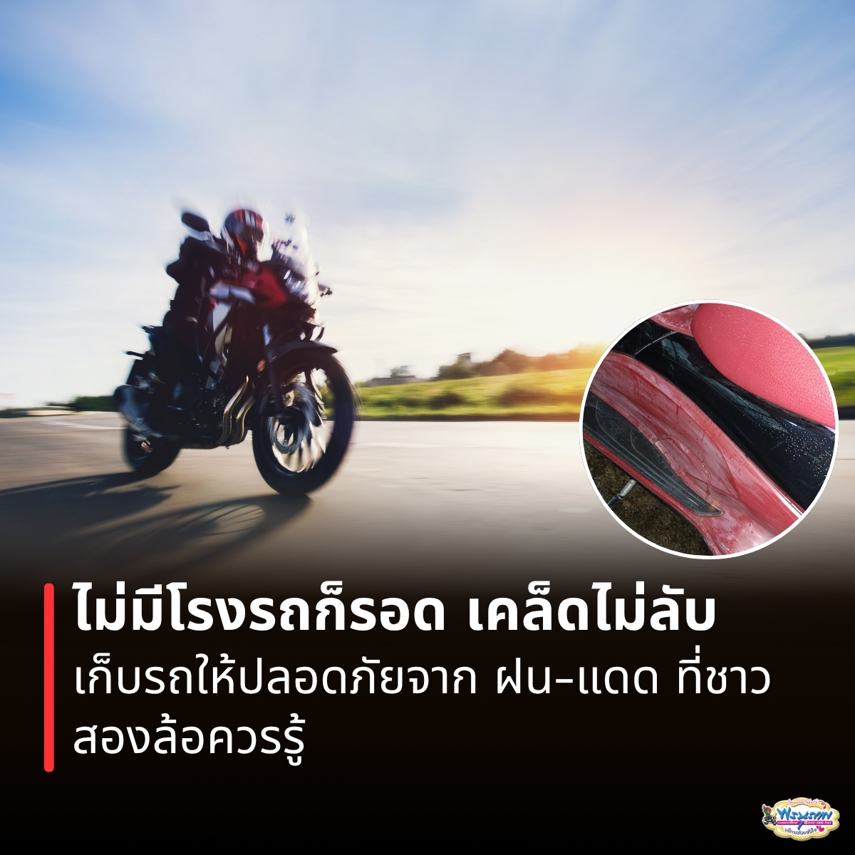 ฝนตก แดดแรง รถเปียกจนเบรกติด สีซีด หลายคนเจอปัญหานี้เพราะ “ไม่มีโรงรถ” แล้วแบบนี้จะดูแลมอเตอร์ไซค์สุดที่รักอย่างไรไม่ให้พังไว? วันนี้เรามีเคล็ดลับง่าย ๆ ที่ช่วยให้รถของคุณรอดปลอดภัยจากฟ้าฝนและแสงแดดเมืองไทย!