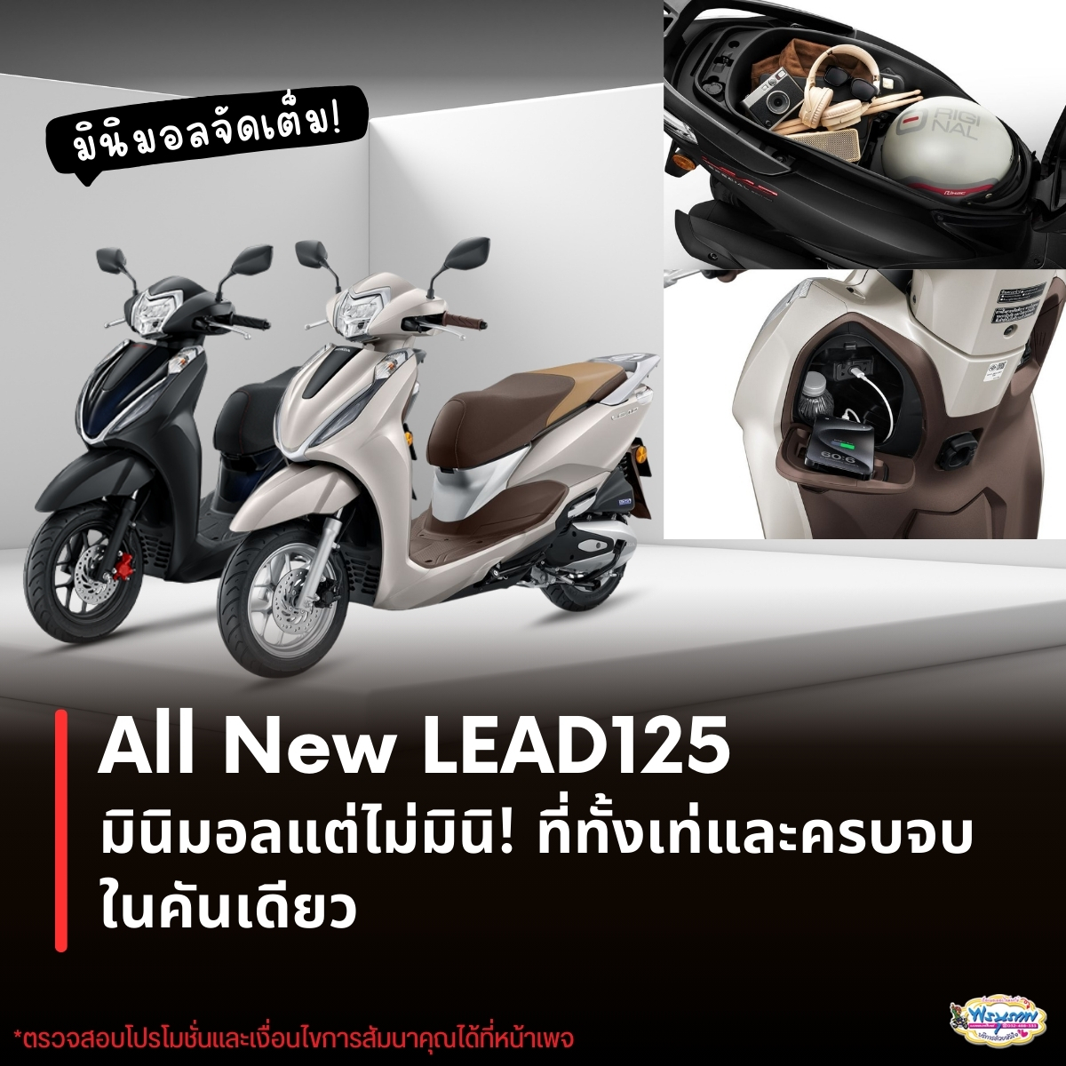 All New LEAD125 เป็นมอเตอร์ไซค์ที่เข้ากับเทรนด์มินิมอลในแบบที่ไม่ทำให้คุณรู้สึกขาดอะไรไป มันมาพร้อมกับดีไซน์ที่เรียบง่ายแต่โดดเด่นด้วยความทันสมัย ฟังก์ชันครบครันที่เหมาะกับทุกเพศทุกวัยที่มีทั้งความความสะดวกสบายและความเท่ในตัวเอง จบครบในคันเดียว