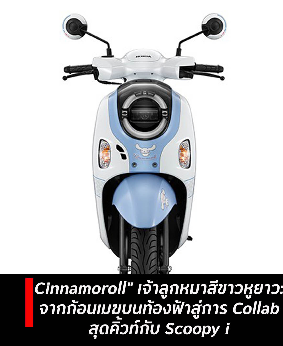 ความฮอตของ Cinnamoroll ไม่หยุดอยู่แค่เครื่องเขียนหรือตุ๊กตา เมื่อ Honda ผู้นำตลาดรถจักรยานยนต์เล็งเห็นถึงพลังของคาแรคเตอร์นี้ จึงเกิดการ Collab ครั้งสำคัญในชื่อ "New Honda Scoopy i Cinnamoroll Limited Edition"